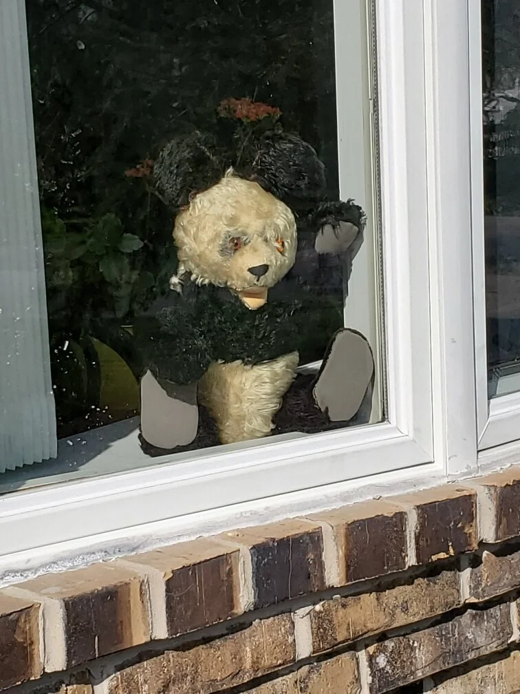 Speaking of the street, the missus put an old teddy bear in the front window today. It seems people airing out bored and moldy toddlers have been asking on NextDoor for neighbors to do this so they can take their kids out on Bear Hunts. Haha. But the missus is a sweetheart. And that’s an old bear grateful for some sunlight.